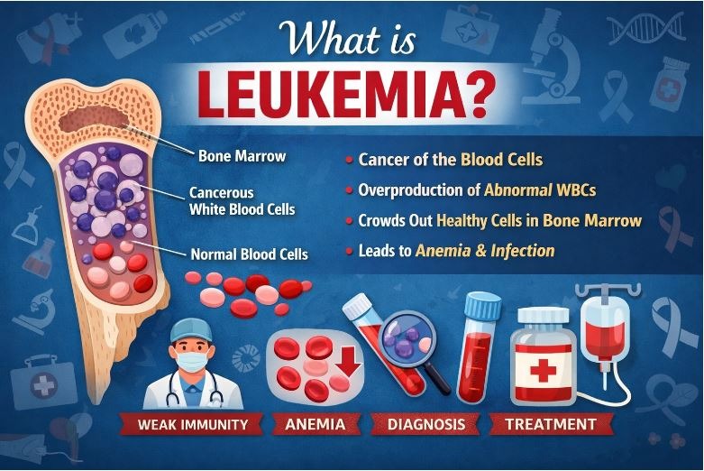 Leukemia refers to the cancer of blood cells and tissues involved in general terms. It usually starts from bone marrow due to the mutation in genes. Bone marrow is the site for the production of the blood cells. These blood cells are produced and passed in circulation for various functions. Overproduction of immature white blood cells is the most common outcome of leukemia. It directly affects the immune system of the body as WBCs are primary cells contributing to immunity.
